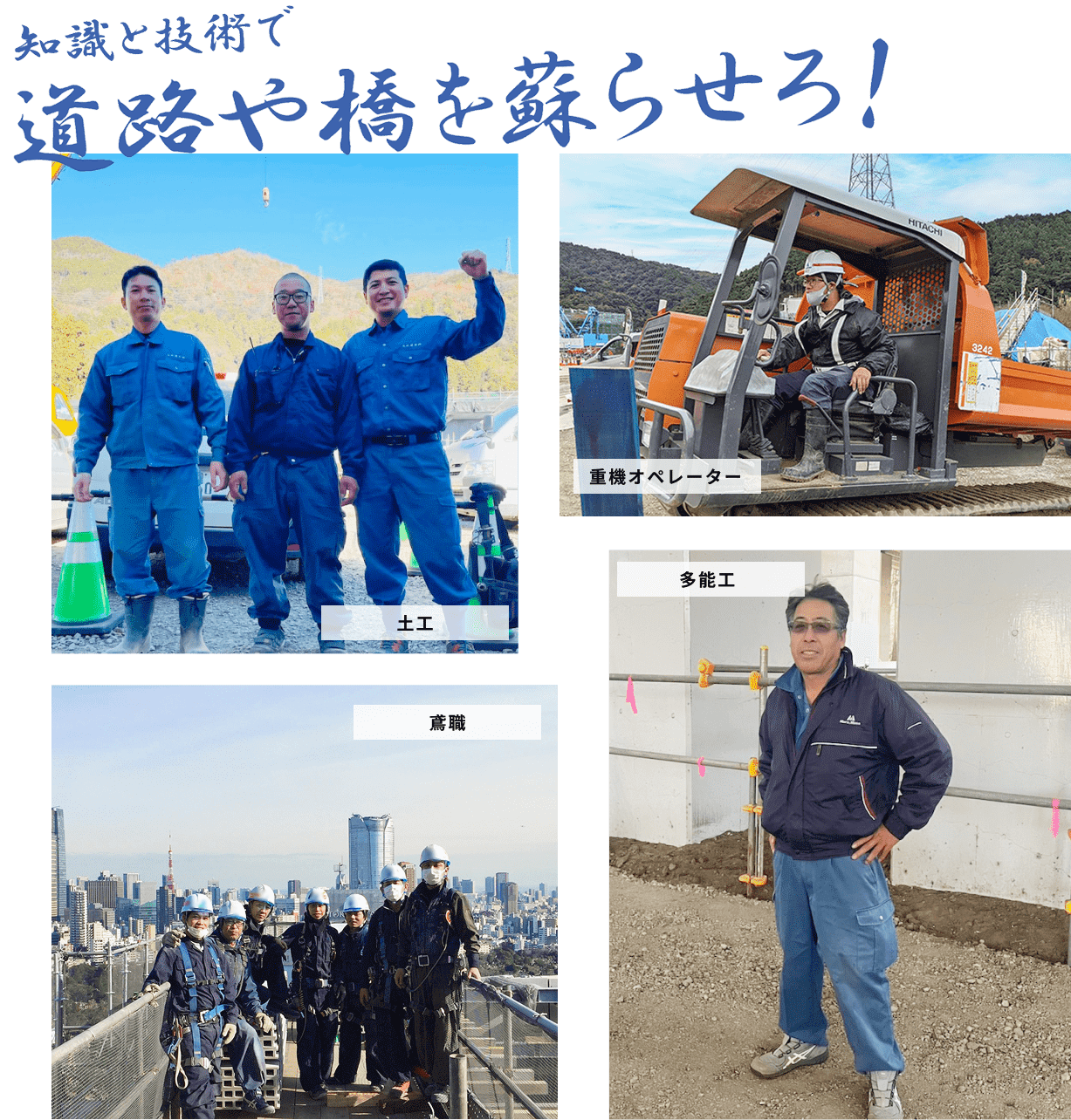 丸政建設は、東京・神奈川エリアを中心に、インフラを修繕し未来につなぐ会社です。あなたも「今」から「一緒に」日本を再生させましょう。