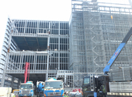 主に民間企業様(主にゼネコン)からのご発注で、マンション、商業ビル、工場などの建築工事を行っています。現場の状況に合わせて、鳶、型枠大工、重機オペレーター、大型車の運転手など、各部門の専門作業員を適材適所に手配し、すべて自社で施行いたします。